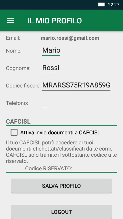un codice fiscale valido.