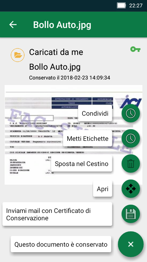 - Ricevere il certificato di conservazione;